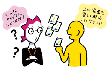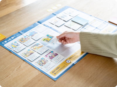 職員は住人の特性を当てて、困る場面を楽しく解決するアイデアを考えよう。
